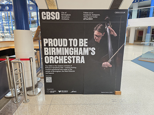 バーミンガム市交響楽団は市民との距離感が近いことで有名ですが、この看板を見てそんな一面を少し垣間見ることができました。